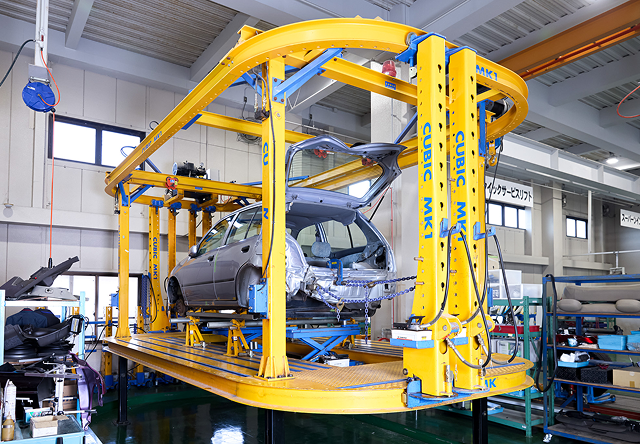 事故などで損傷した車両のフレームを、ミリ単位で修復することができます。台式:1台と床式:2台の合計3台を設置しています。