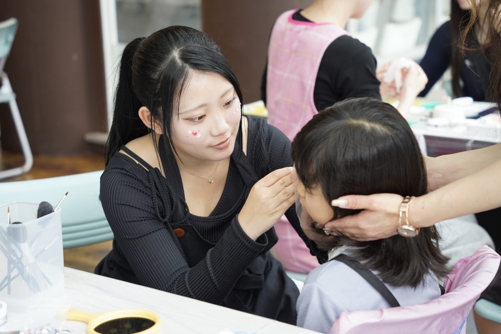 学生たちは、イベントに来場したお子さまたちへ毎年恒例のフェイスペイントの体験ブースを実施。