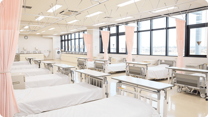 実際の病室を再現!基礎的な看護技術を身につけます。