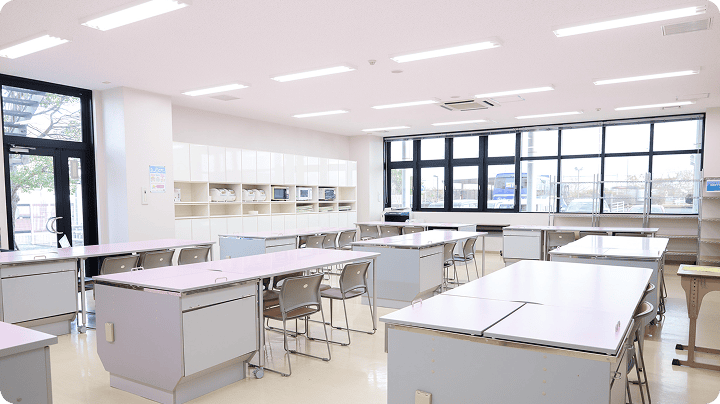 実際の自宅を再現した実習室。在宅ケアの現場に近い環境で学びます。