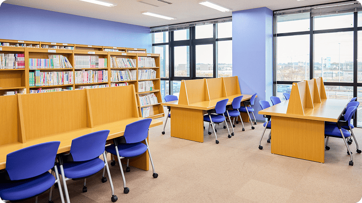 看護に関する専門書がたくさん!落ち着いた雰囲気での空間は自習もはかどります。