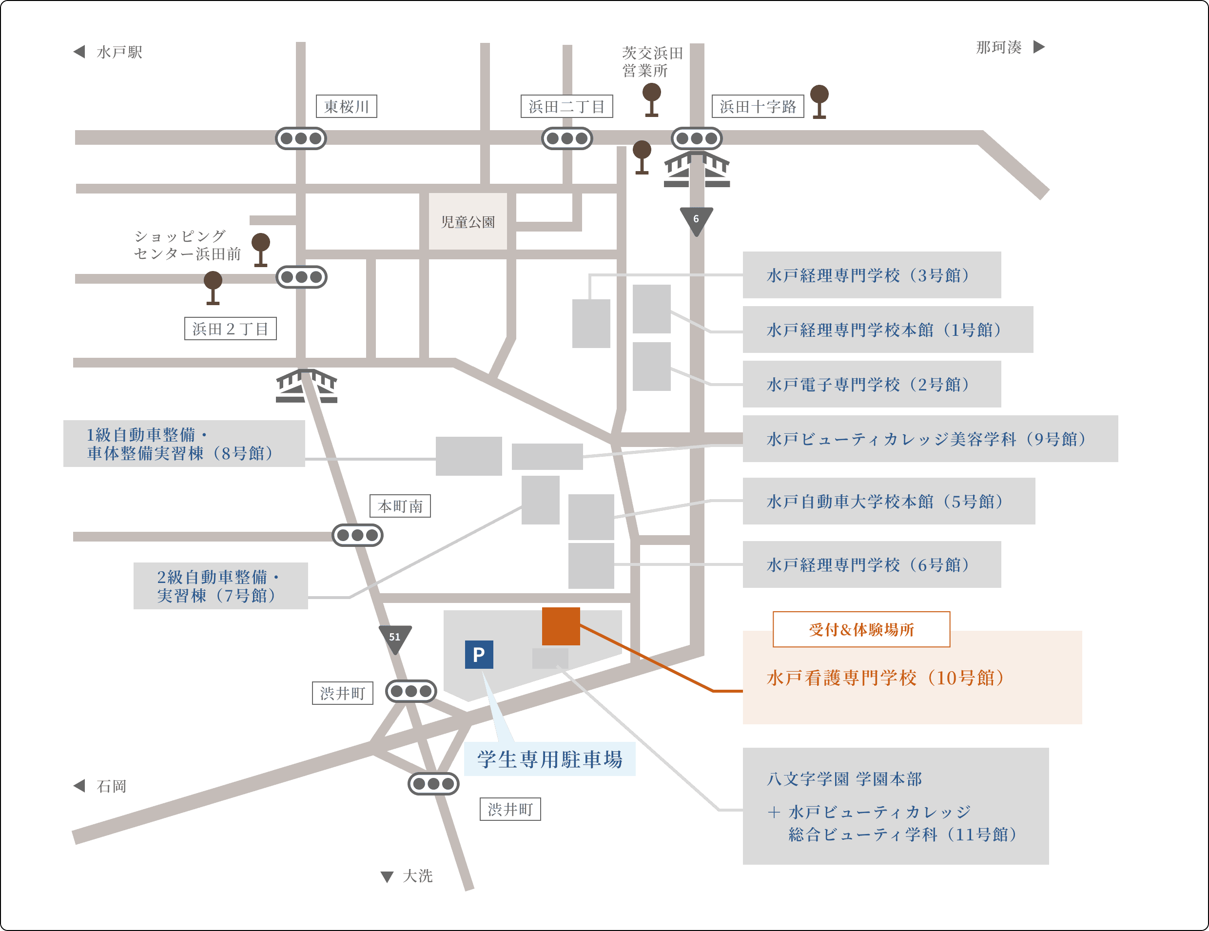 受付は水戸看護専門学校の校舎で行います。どうぞお越しください。