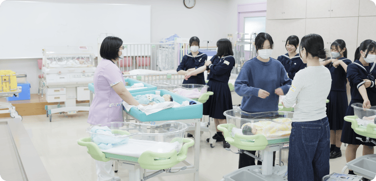 本物そっくりの赤ちゃん人形👶を使って、沐浴(もくよく)体験にチャレンジ!産後の母親のケアも大切なテーマです💛