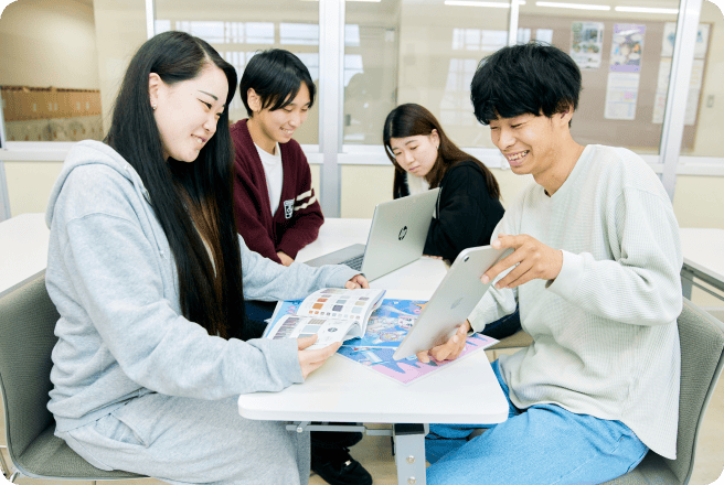 チームでの制作や他校からの依頼も経験でき、少しずつ外の世界とつながりながら成長していけます。