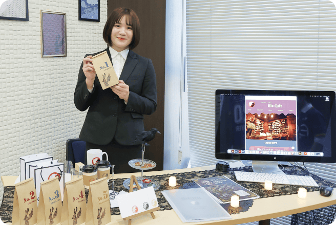 形にするをコンセプトとするこの授業では、グッズだけではなく、パッケージのデザイン、