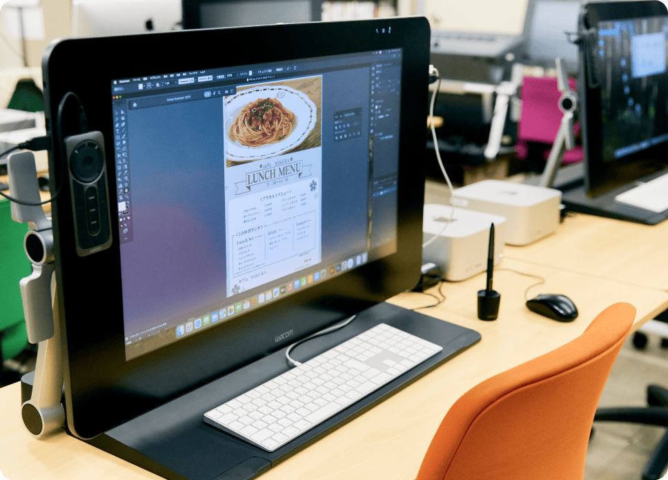 グラフィック、イラスト、動画、雑誌、Web。全ての制作を行えるクリエイティブなライセンスを一人一つ導入し、