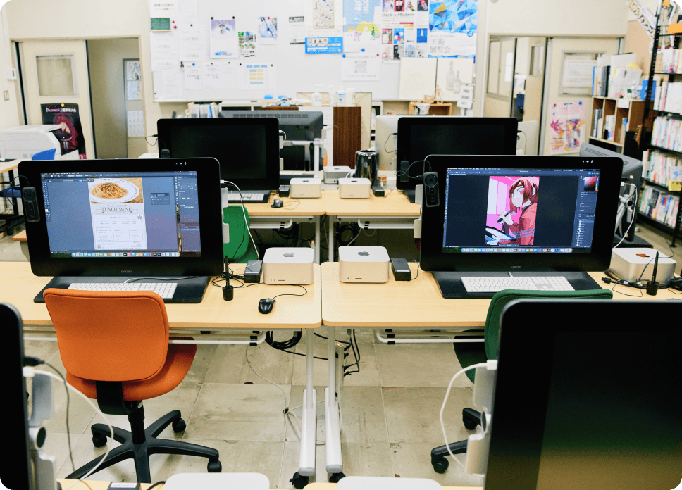本校では、モノ作りに本気で取り組むあなたのために、業界水準の設備と、自由度の高い制作環境を整えています。