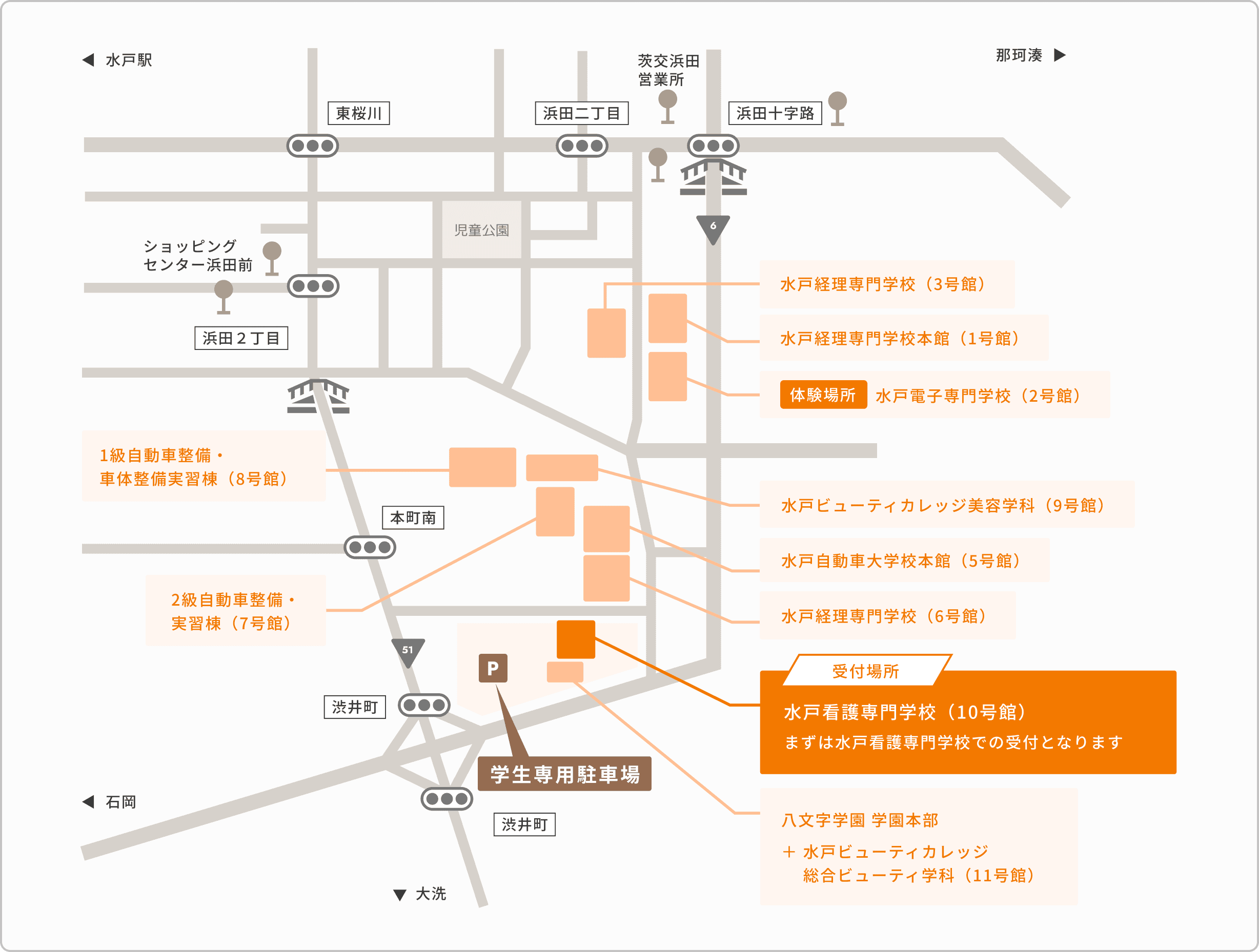 受付は水戸看護専門学校の校舎で行います。どうぞお越しください。