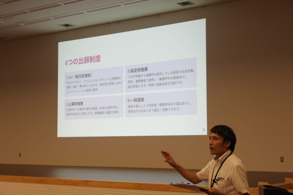 2025.09.29(月) 【出願直前説明会】無事終了!ご参加ありがとうございました 「出願直前説明会」を2日間にわたり開催し、無事に終了しました!当日はたくさんの高校生・保護者の方にご参加いただき、出願に向けた不安や疑問を解消できる時間となりました。いよいよ10月から出願が始まります。今回の説明会が皆さんの大切な一歩につながれば嬉しいです。今後も八文字学園は、高校生の皆さんの進路選びをしっかりとサポートしてまいります!